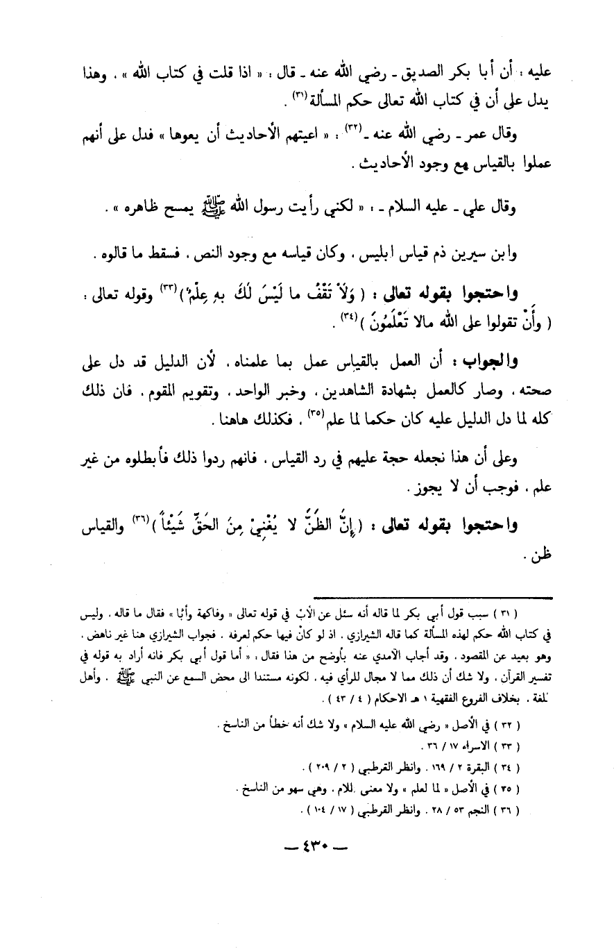وعَلى أَن هَذَا نجعله حجَّة عَلَيْهِم فِي رد الْقيَاس فَإِنَّهُم ردوا ذَلِك فأبطلوه من غير علم فَوَجَبَ أَن لَا يجوز