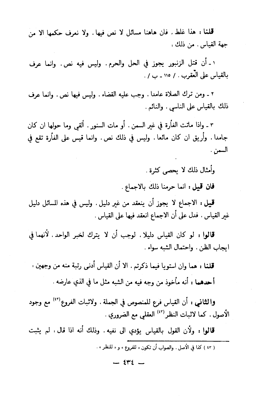 قُلْنَا هَذَا غلط فَإِن هَاهُنَا مسَائِل لَا نَص فِيهَا وَلَا نَعْرِف حكمهَا إِلَّا من جِهَة الْقيَاس من ذَلِك