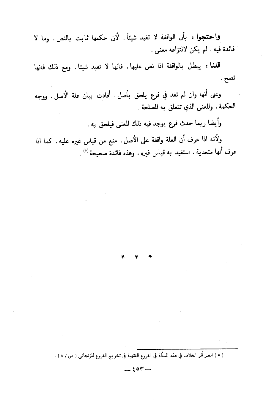 وَاحْتَجُّوا بِأَن الواقفة لَا تفِيد شَيْئا لِأَن حكمهَا ثَابت بِالنَّصِّ وَمَا لَا فَائِدَة فِيهِ لم يكن لانتزاعه معنى