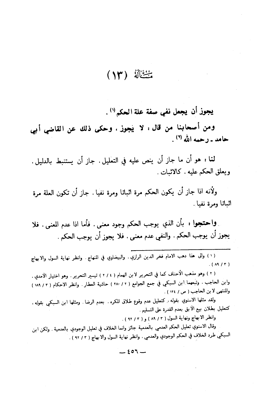 وَلِأَنَّهُ إِذا جَازَ أَن يكون الحكم مرّة إِثْبَاتًا وَمرَّة نفيا جَازَ أَن تكون الْعلَّة مرّة إِثْبَاتًا وَمرَّة نفيا