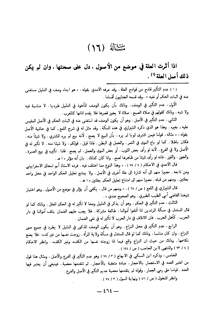 إِذا أثرت الْعلَّة فِي مَوضِع من الْأُصُول دلّ على صِحَّتهَا وَإِن لم يكن ذَلِك أصل الْعلَّة