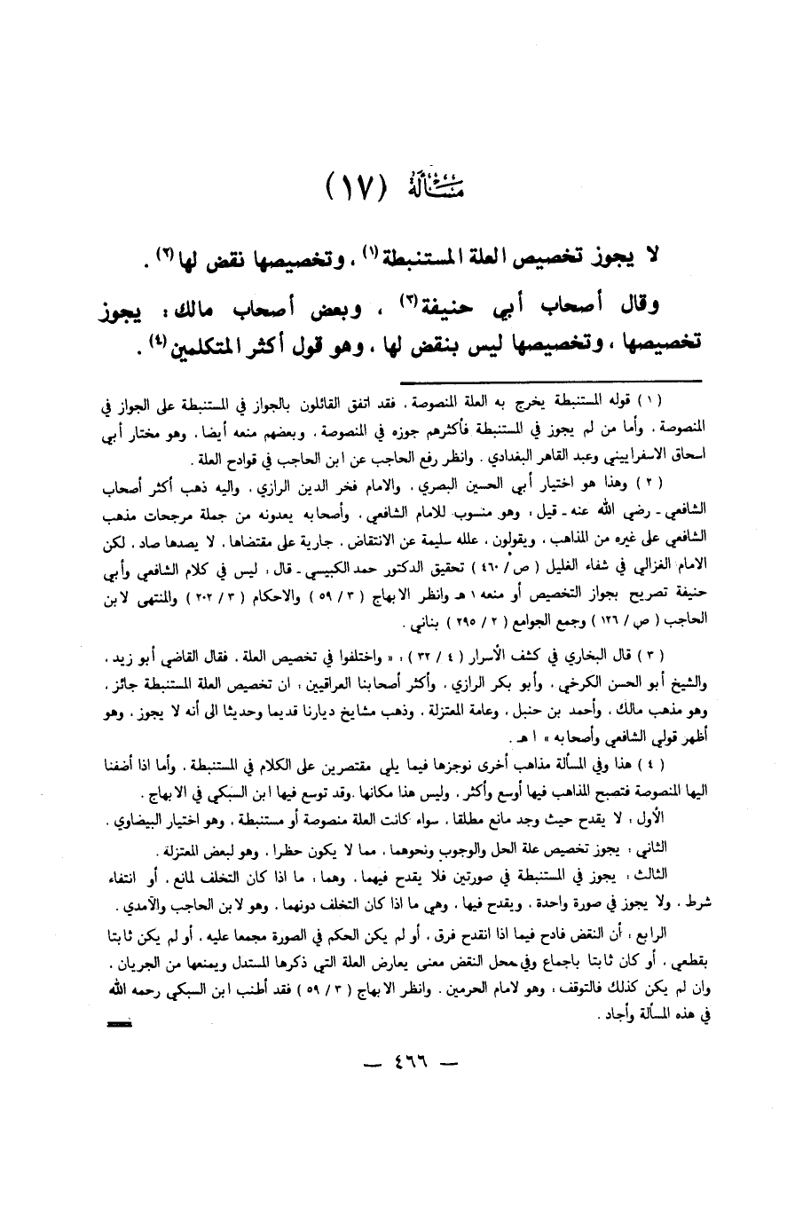 لَا يجوز تَخْصِيص الْعلَّة المستنبطة وتخصيصها نقض لَهَا