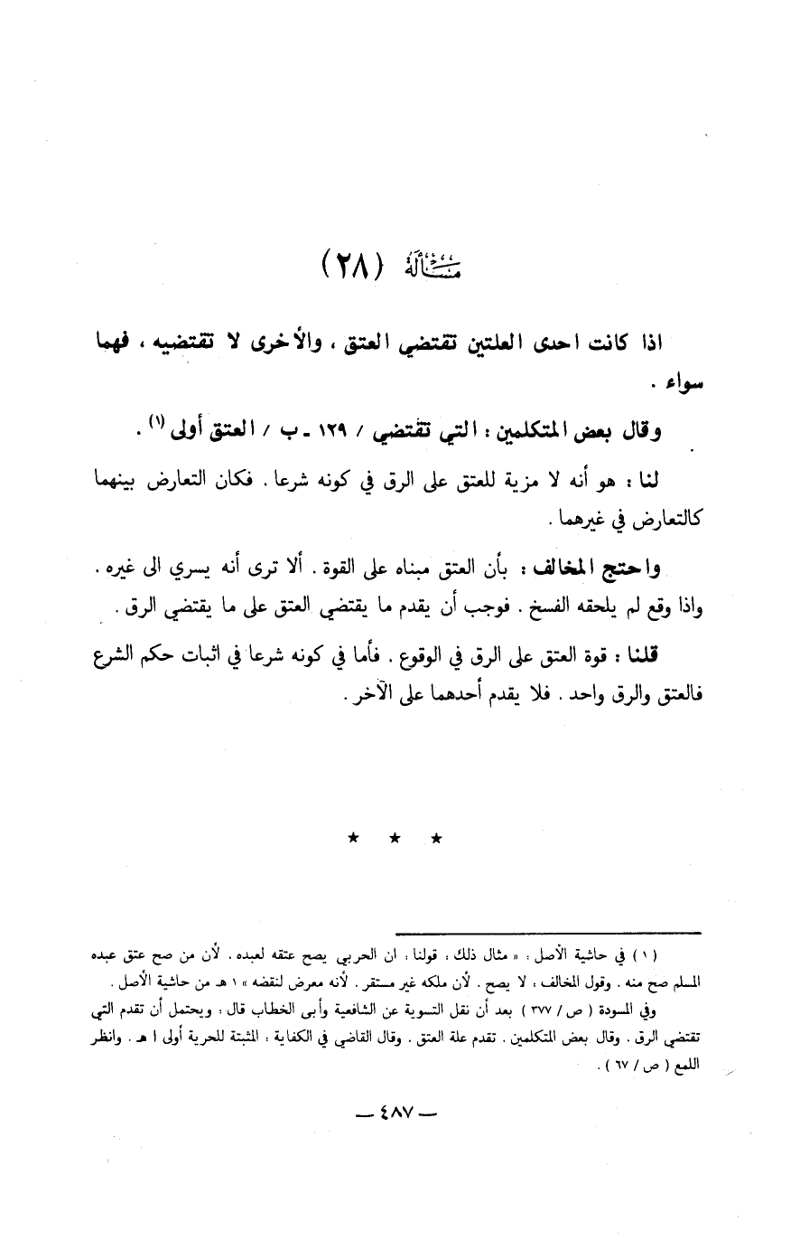 وَقَالَ بعض الْمُتَكَلِّمين الَّتِي تَقْتَضِي الْعتْق أولى