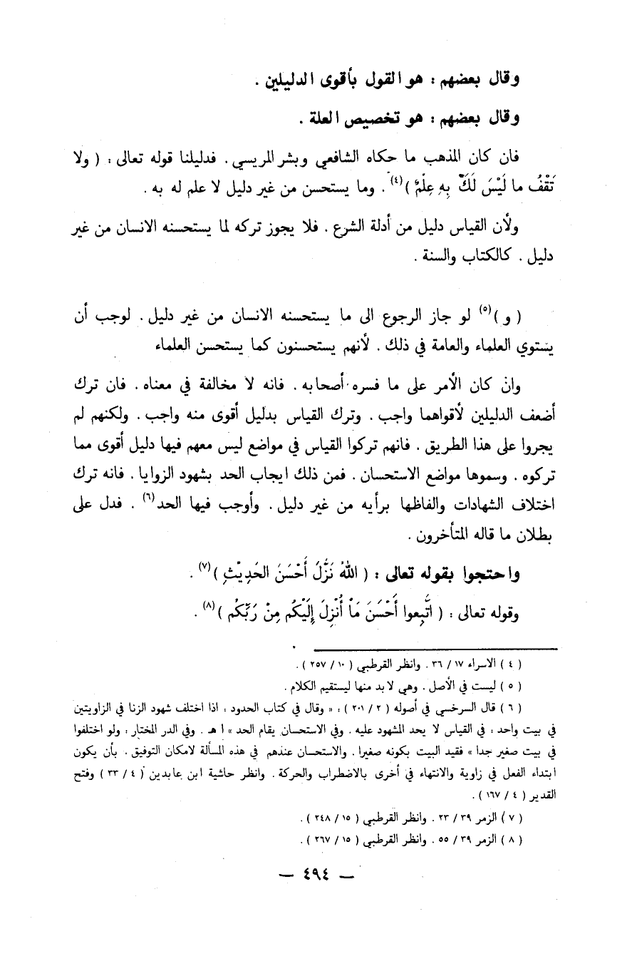 وَلَو جَازَ الرُّجُوع إِلَى مَا يستحسنه الْإِنْسَان من غير دَلِيل لوَجَبَ أَن يَسْتَوِي الْعلمَاء والعامة فِي ذَلِك لأَنهم يستحسنون كَمَا يستحسن الْعلمَاء