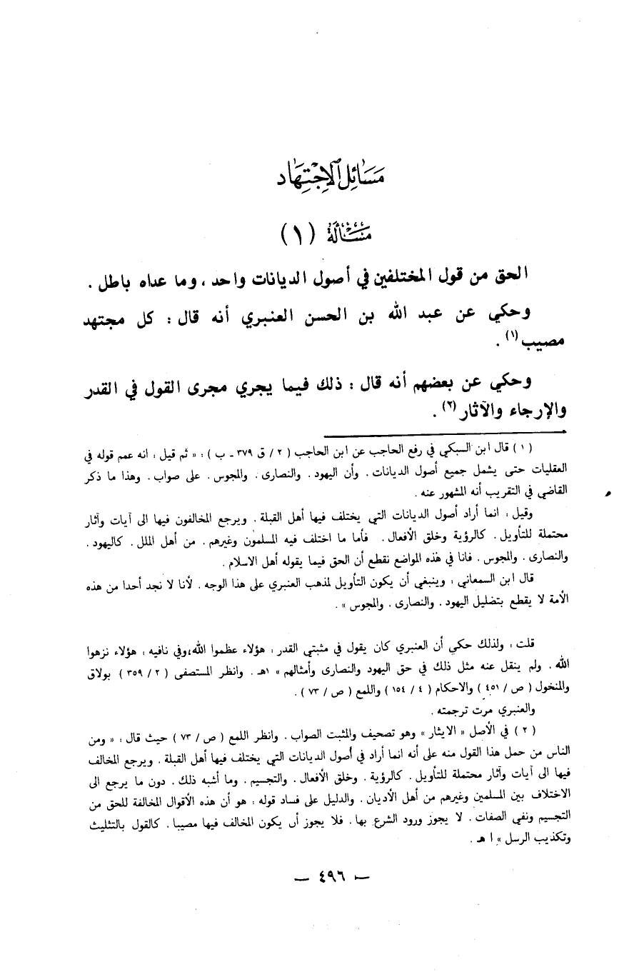 الْحق من قَول الْمُخْتَلِفين فِي أصُول الديانَات وَاحِد وَمَا عداهُ بَاطِل