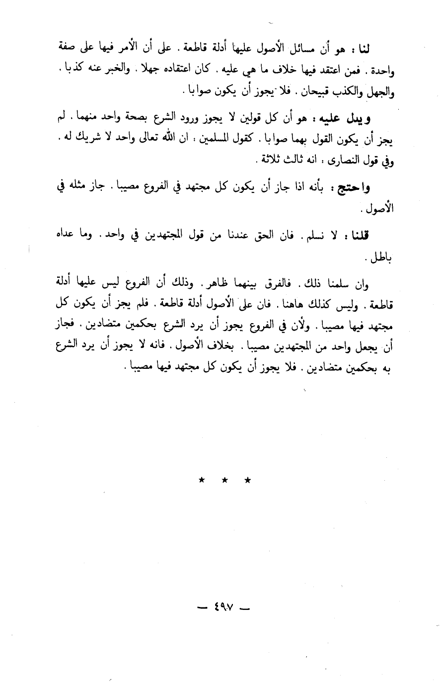وَاحْتج بِأَنَّهُ إِذا جَازَ أَن يكون كل مُجْتَهد فِي الْفُرُوع مصيبا جَازَ مثله فِي الْأُصُول