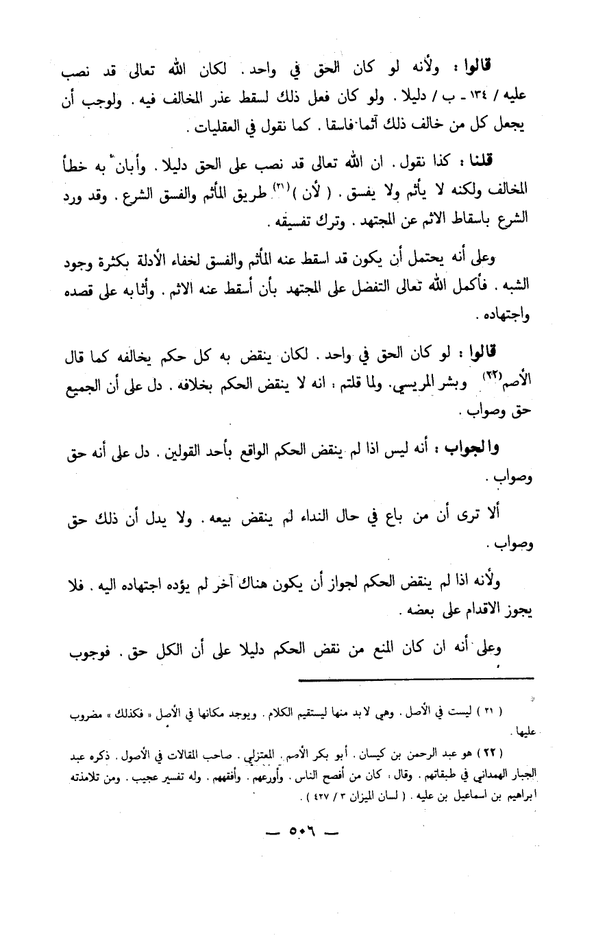 وعَلى أَنه إِن كَانَ الْمَنْع من نقض الحكم دَلِيلا على أَن الْكل حق فوجوب