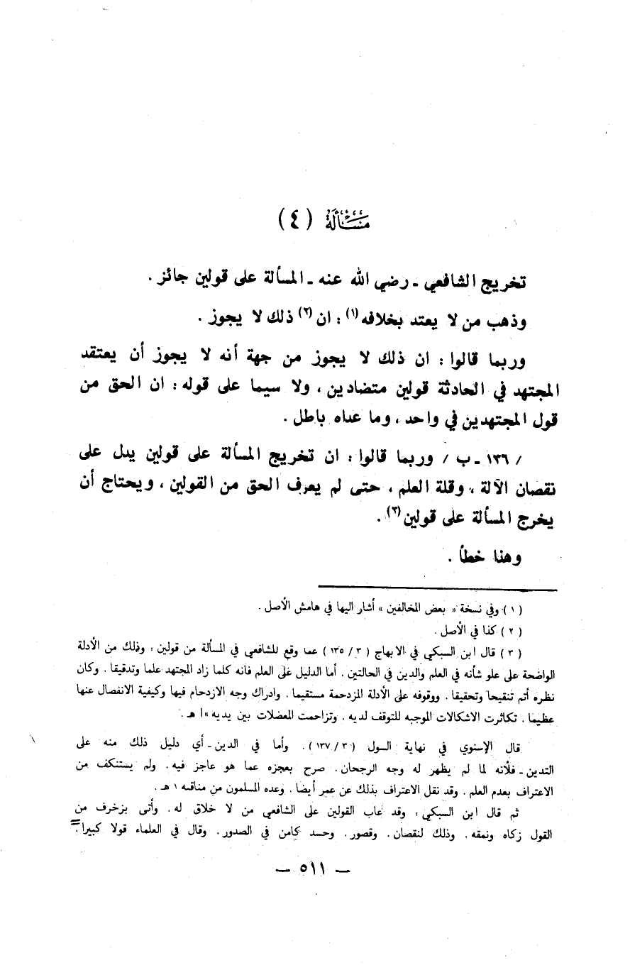 تَخْرِيج الشَّافِعِي رَضِي الله عَنهُ الْمَسْأَلَة على قَوْلَيْنِ جَائِز