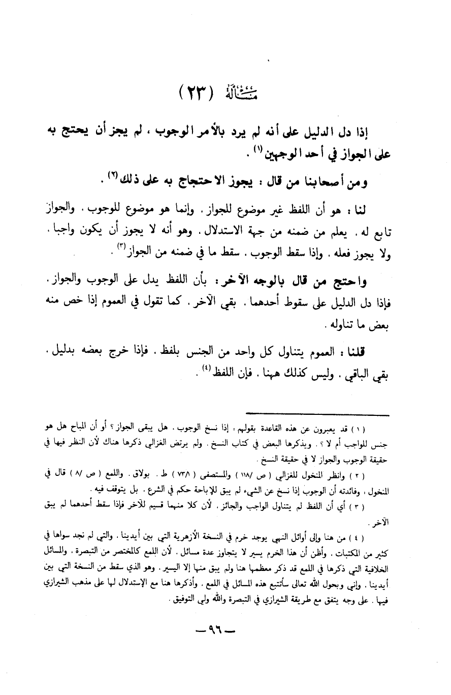 وَاحْتج من قَالَ بِالْوَجْهِ الآخر بِأَن اللَّفْظ يدل على الْوُجُوب وَالْجَوَاز فَإِذا دلّ الدَّلِيل على سُقُوط أَحدهمَا بَقِي الآخر كَمَا تَقول فِي الْعُمُوم إِذا خص مِنْهُ بعض مَا تنَاوله