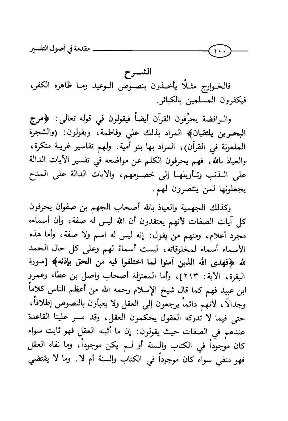وكذلك الجهمية - والعياذ بالله- أصحاب الجهم بن صفوان يحرفون كل آيات الصفات، لأنهم يعتقدون أن الله ليس له صفة، وأن أسماءه مجرد إعلام، ومنهم من يقول: إنه ليس له اسم ولا صفة وأما هذه الأسماء فهي أسماء لمخلوقاته، ليست أسماء له وعلى كل حال الحمد لله (ْ فَهَدَى اللَّهُ الَّذِينَ آمَنُوا لِمَا اخْتَلَفُوا فِيهِ مِنَ الْحَقِّ بِإِذْنِهِ) (البقرة: 213) ، وأما المعتزلة أصحاب واصل بن عطاء وعمرو بن عبيد فهم كما قال شيخ الإسلام رحمه الله من أعظم الناس كلاماً وجدالاً؛ لأنهم دائماً يرجعون إلي العقل ولا يعبؤن بالنصوص إطلاقاً، حتى فيما لا تدركه العقول يحكمون العقل، والقاعدة عندهم في الصفات يقولون: إن ما أثبته العقل فهو ثابت سواء كان موجوداً في الكتاب والسنة أو لم يكن موجوداً، وما نفاه العقل فهو منفي سواء كان موجوداً في الكتاب والسنة أم لا، وما لا يقتضي