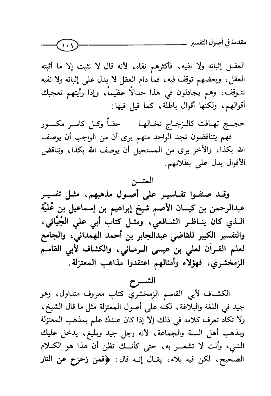 الكشاف لأبي القاسم الزمخشري كتاب معروف متداول، وهو جيد في اللغة والبلاغة، لكنه على أصول المعتزلة مثل ما قال الشيخ، ولا تكاد تعرف كلامه في ذلك إلا إذا كان عندك علم بمذهب المعتزلة ومذهب أهل السنة والجماعة؛ لأنه رجل جيد وبليغ، يدخل عليك الشيء وأنت لا تشعر به، حتى كأنك تظن أن هذا هو الكلام الصحيح السداد، لكن فيه بلاء، فمثلا: قال: (فَمَنْ زُحْزِحَ عَنِ النَّارِ