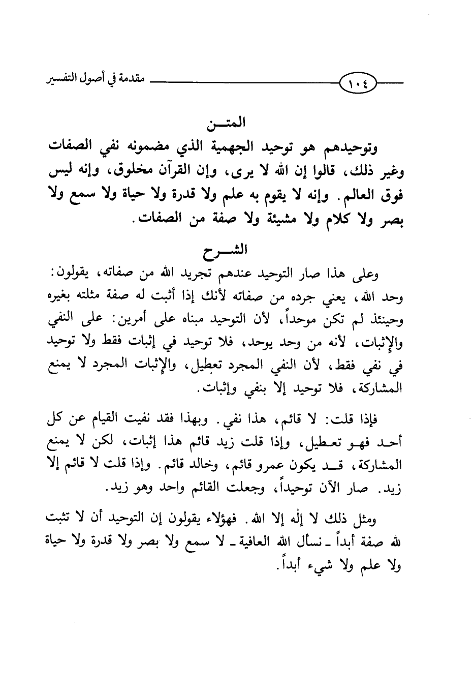 ومثل ذلك لا إله إلا الله. فهؤلاء يقولون إن التوحيد أن لا تثبت لله صفة أبدا ـ نسأل الله العافية ـ فلا سمع ولا بصر ولا قدرة ولا حياة ولا علم ولا شيء أبدا.