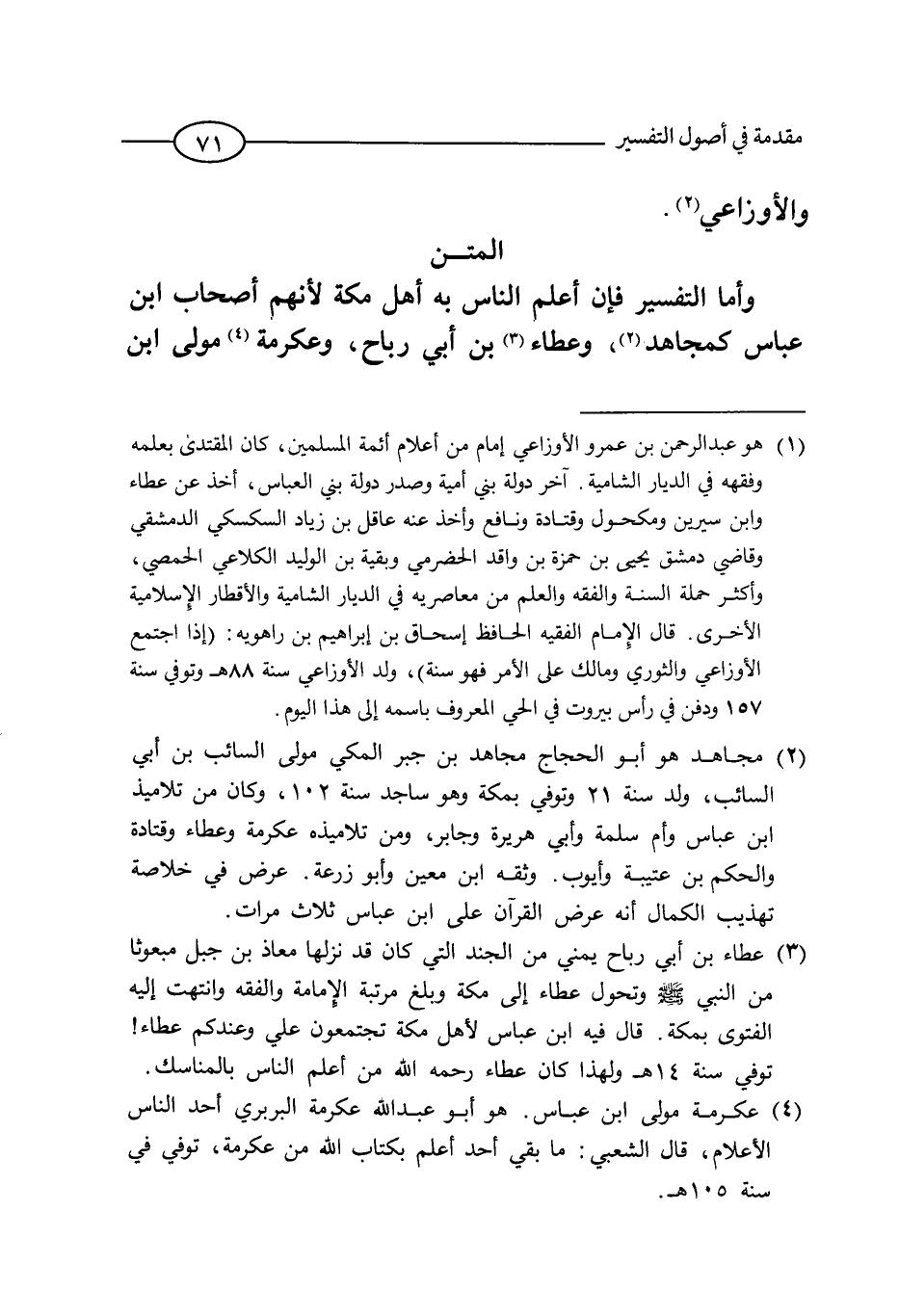(¬3) مجاهد هو أبو الحجاج مجاهد بن جبر المكي مولى السائب بن أبي السائب، ولد سنة 21هـ وتوفي بمكة وهو ساجد سنة 102هـ، وكان من تلاميذ ابن عباس وأم سلمة وأبي هريرة وجابر، ومن تلاميذه عكرمة وعطاء وقتادة والحكم بن عتيبة وأيوب وثقة ابن معين، ووأبو زرعة. ورد في خلاصة تهذيب الكمال أنه عرض القرآن على ابن عباس ثلاث مرات..