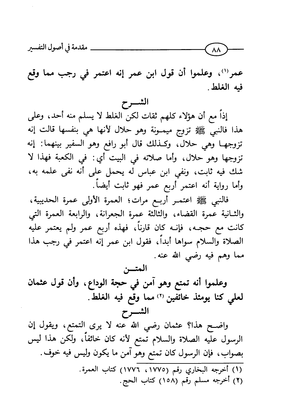 عثمان رضي الله عنه لا يري التمتع، ويقول إن الرسول عليه الصلاة والسلام تمتع؛