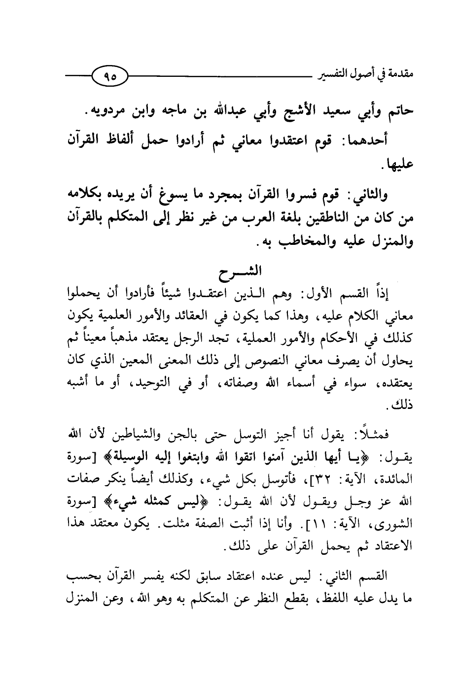 القسم الثاني: ليس عنده اعتقاد سابق لكنه يفسر القرآن بحسب ما يدل عليه اللفظ، بقطع النظر به وهو الله، وعن المنزل