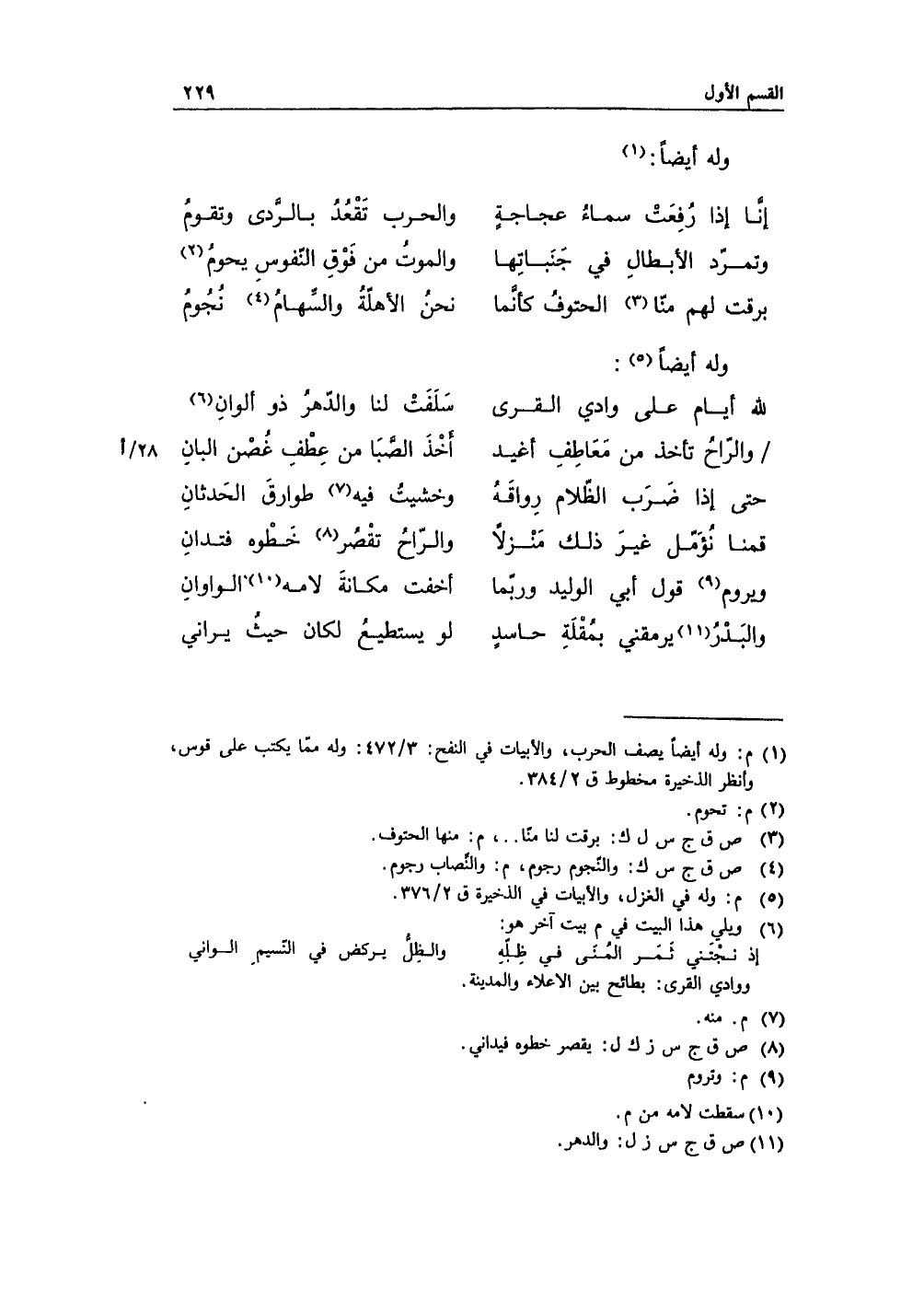 برقت لهم منّا الحتوفُ كأنَّما ... نحنُ الأهلّةُ والسِّهامُ نُجُومُ