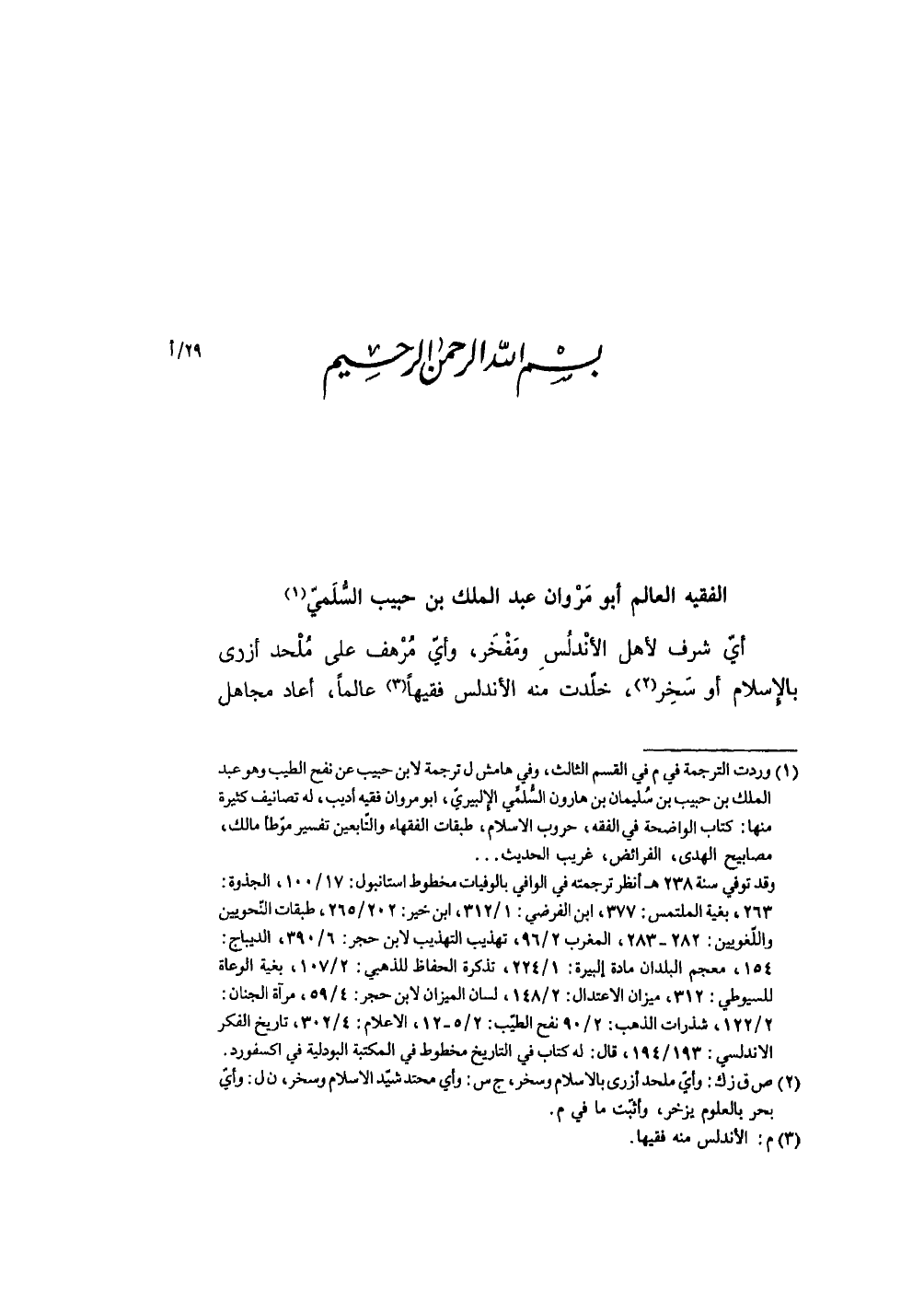 الفقيه العالم أبو مَرْوان عبد الملك بن حبيب السُّلَميّ