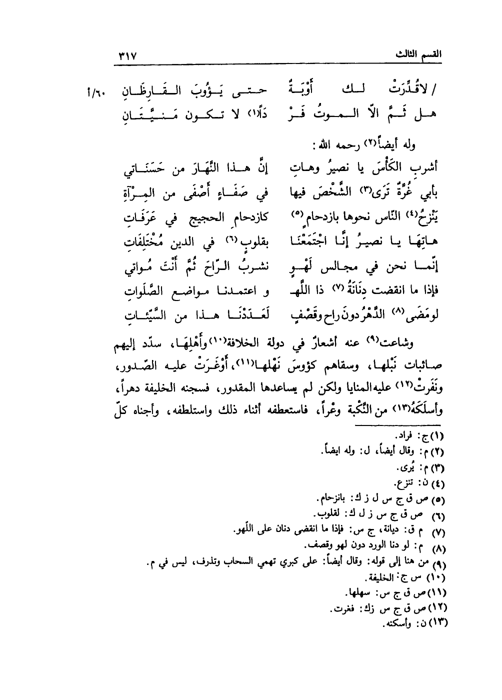 أشربِ الكَأسَ يا نصيرُ وهاتِ ... إنَّ هذا النَّهَارَ من حَسَنَاتي