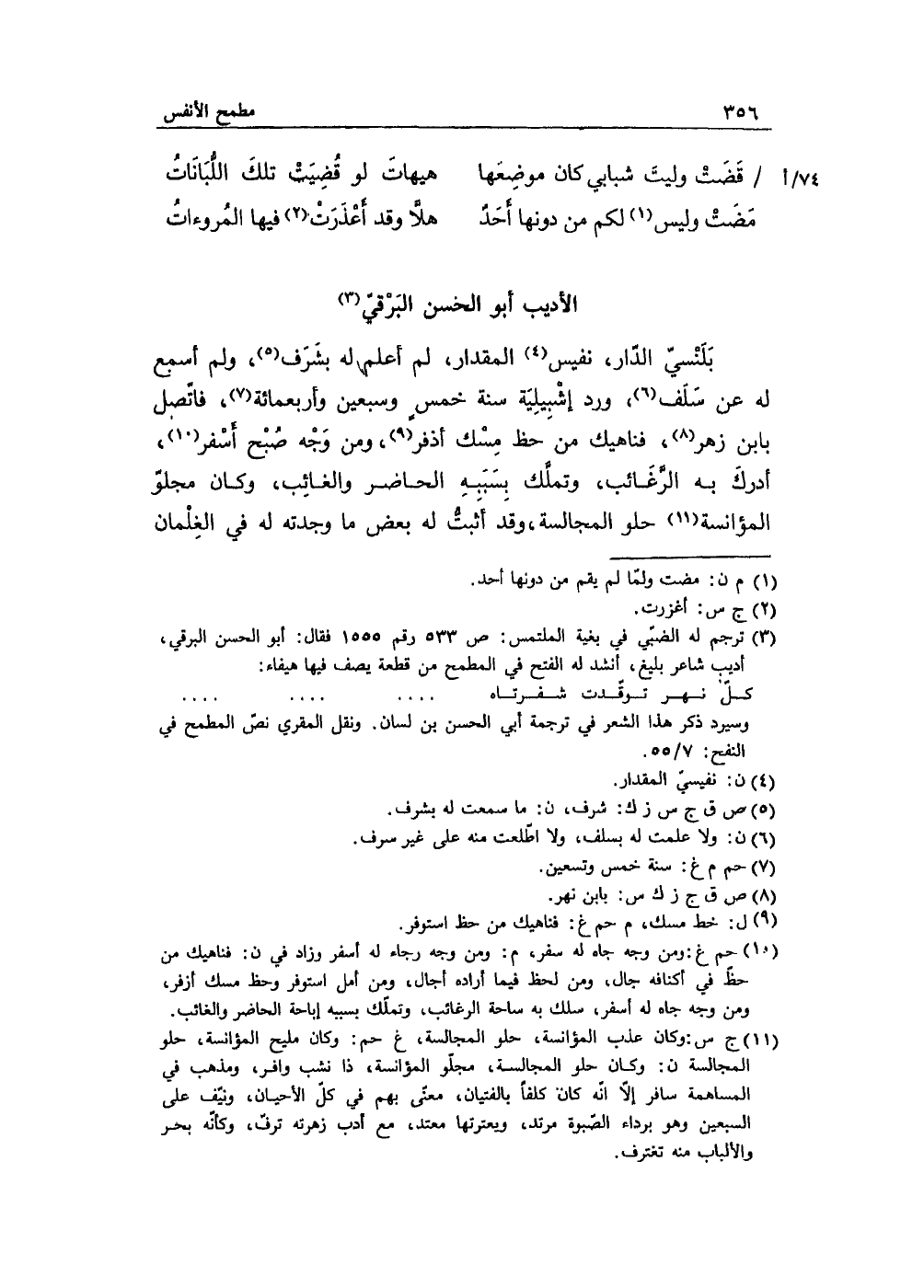 قَضَتْ وليتَ شبابي كان موضِعَها ... هيهاتَ لو قُضِيَتْ تلكَ اللُّبَانَاتُ
