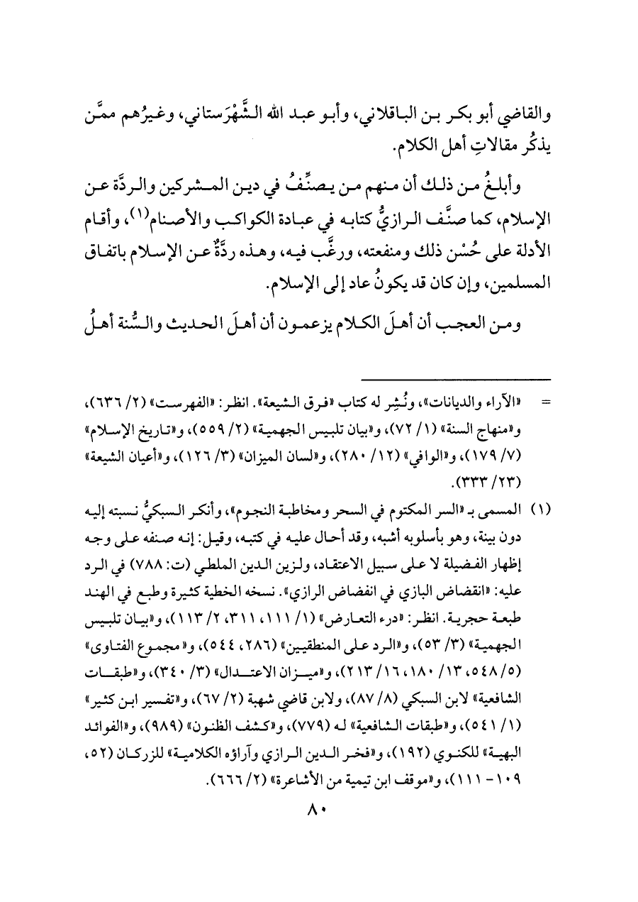 والقاضي أبو بكر بن الباقلاني, وأبو عبد الله الشَّهْرَستاني, وغيرُهم ممَّن يذكُر مقالاتِ أهل الكلام.