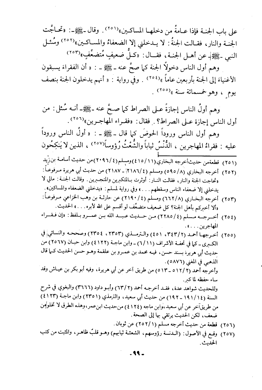 على باب الجنة فإذا عامة من دخلها المساكين " وقال (: " تحاجت الجنة والنار، فقالت الجنة: لا يدخلني إلا الضعفاء والمساكين " وسئل النبي (عن أهل الجنة، فقال: " كل ضعيف متضعف ".