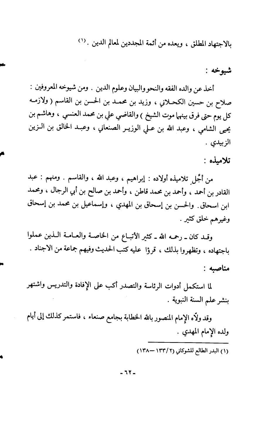 بِالِاجْتِهَادِ الْمُطلق ويعده من أَئِمَّة المجددين لمعالم الدّين