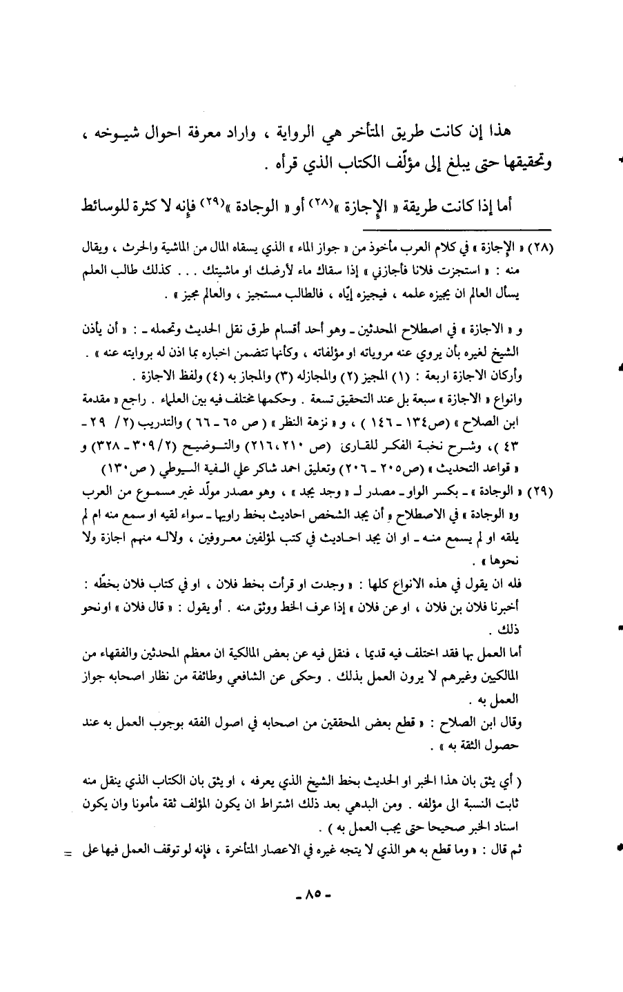 هَذَا إِن كَانَت طَرِيق الْمُتَأَخر هِيَ الرِّوَايَة وَأَرَادَ معرفَة أَحْوَال شُيُوخه وتحقيقها حَتَّى يبلغ إِلَى مؤلف الْكتاب الَّذِي قَرَأَهُ أما إِذا كَانَت طَريقَة الإيجازة أَو الوجادة فَإِنَّهُ لَا كَثْرَة للوسائط