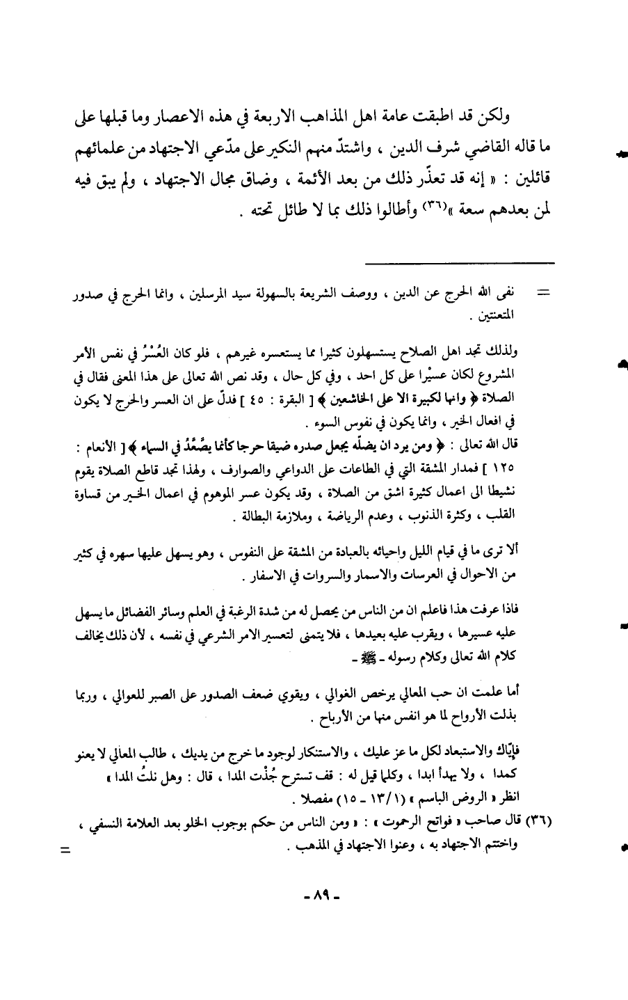 وَلَكِن قد أطبقت عَامَّة أهل الْمذَاهب الْأَرْبَعَة فِي هَذِه الْأَعْصَار وَمَا قبلهَا على مَا قَالَه القَاضِي شرف الدّين وَاشْتَدَّ مِنْهُم النكير على مدعي الِاجْتِهَاد من عُلَمَائهمْ قائلين إِنَّه قد تعذر ذَلِك من بعد الْأَئِمَّة وضاق مجَال الِاجْتِهَاد وَلم يبْق فِيهِ لمن بعدهمْ سَعَة وأطالوا ذَلِك بِمَا لَا طائل تَحْتَهُ