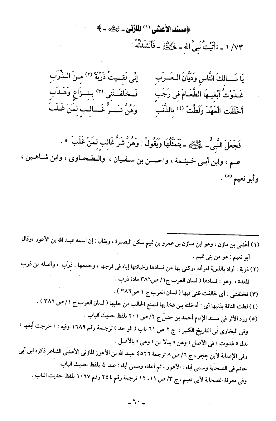 73/ 1 - " أَتَيْتُ نَبِيَّ اللهِ - صلى الله عليه وسلم - فَأَنْشَدْتُهُ: