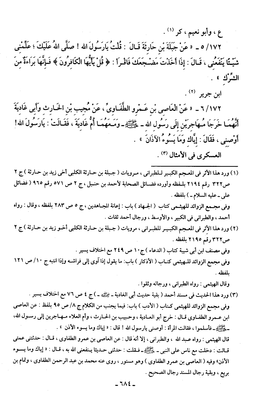 (¬2) ورد هذا الأثر في المعجم الكبير للطبرانى، مرويات (جبلة بن حارثة الكلبى أخو زيد بن حارثة) ج 2 ص 322 رقم 21953 بلفظه.