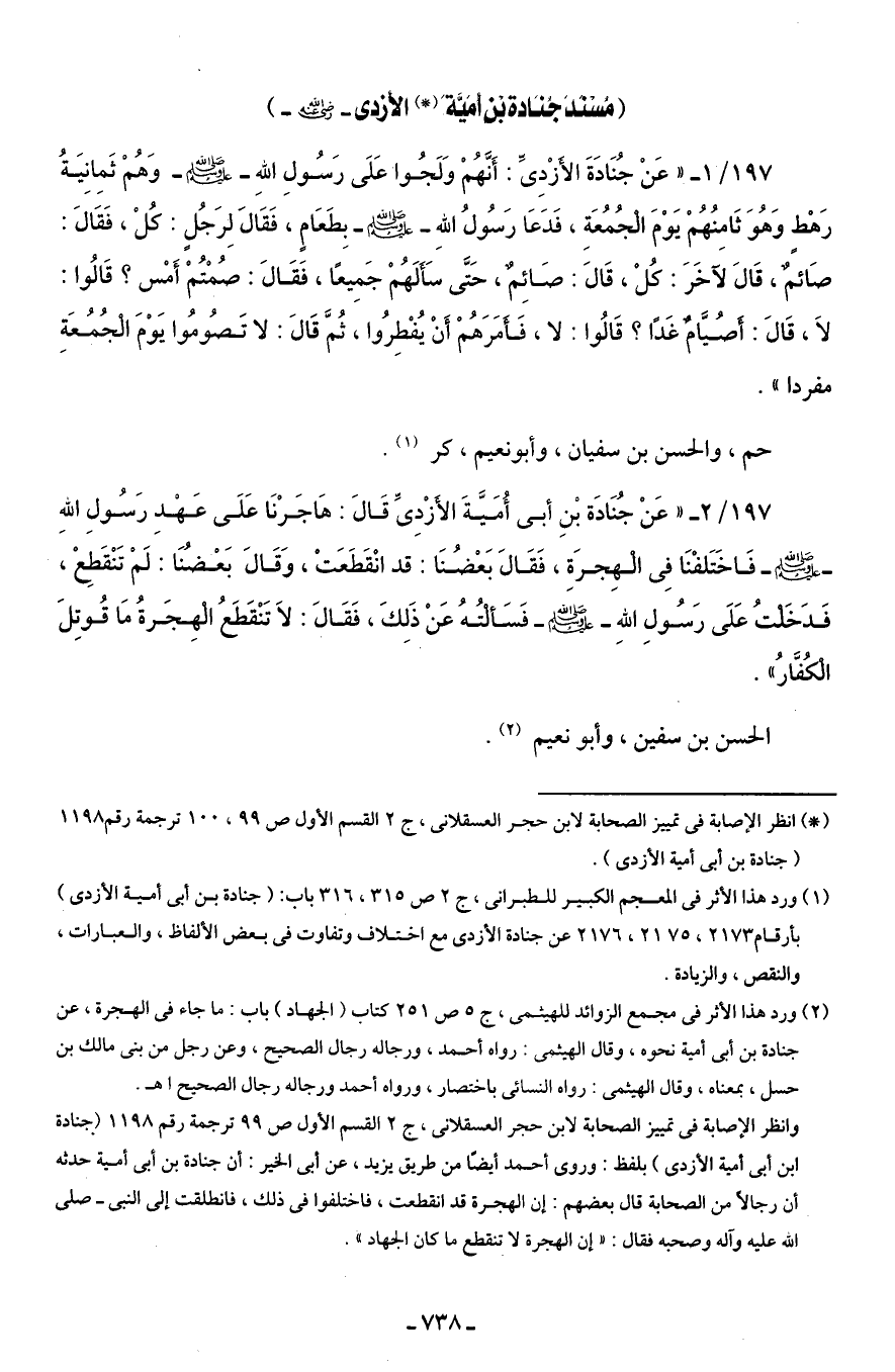 (*) انظر الإصابة في تمييز الصحابة لابن حجر العسقلانى، ج 2 القسم الأول ص 99، 100 ترجمة رقم 1198 (جنادة بن أبى أمية الأزدى).
