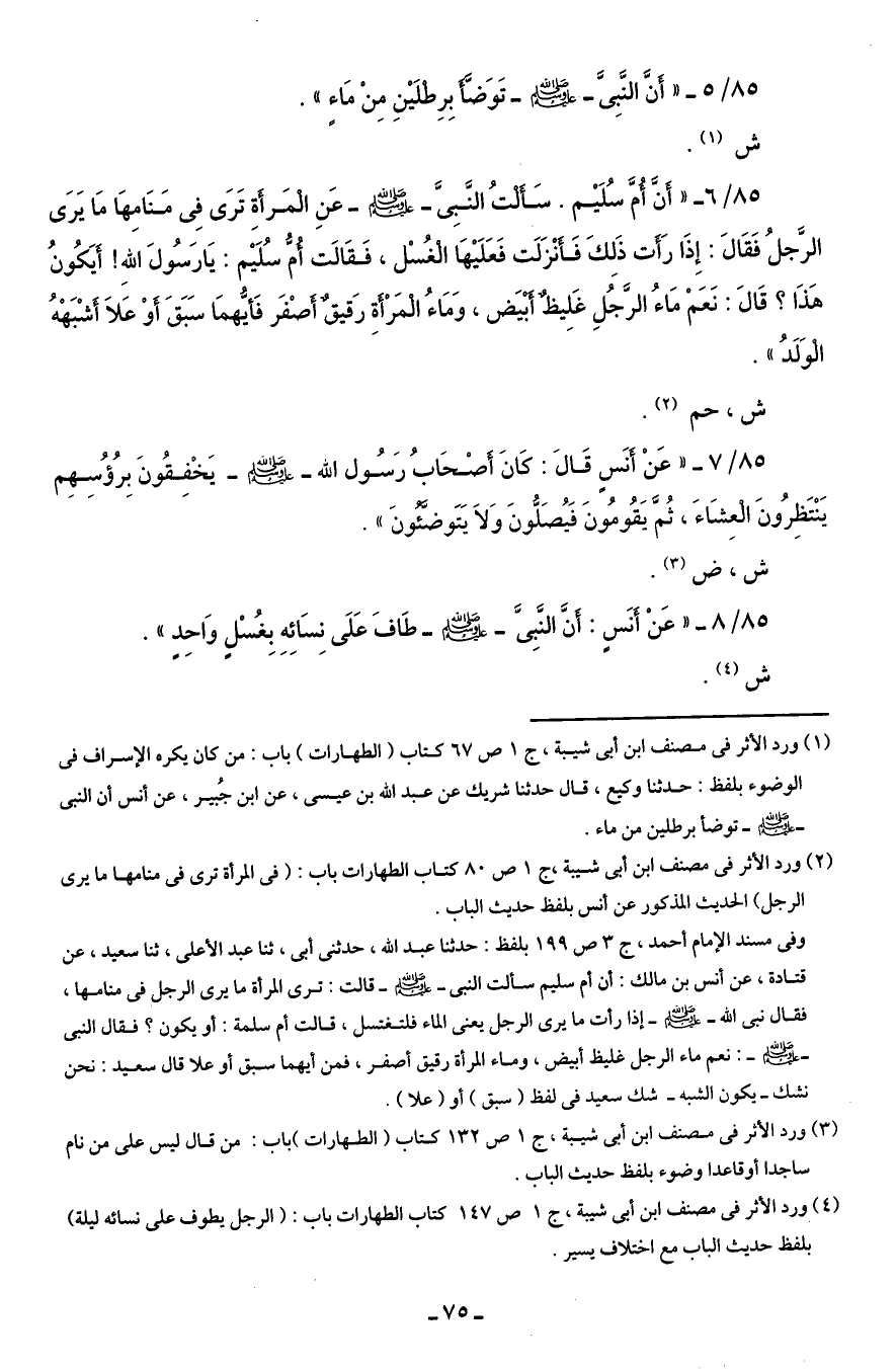 (¬2) ورد الأثر في مصنف ابن أبى شيبة، ج 1 ص 80 كتاب الطهارات باب: (في المرأة ترى في منامها ما يرى الرجل) الحديث المذكور عن أنس بلفظ حديث الباب.