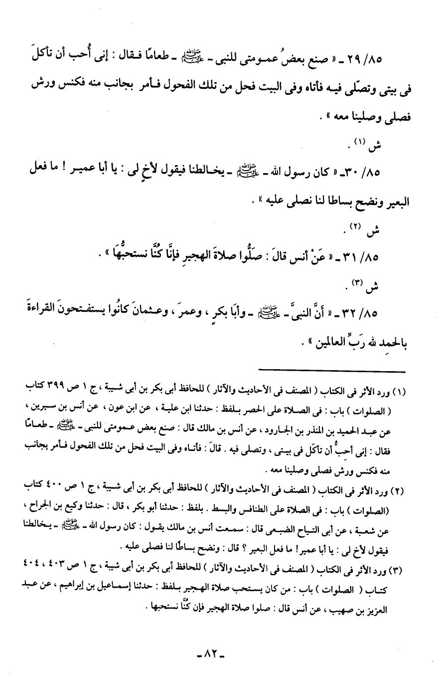 85/ 31 - "عَنْ أنس قالَ: صَلُّوا صلاةَ الهجيرِ فإنَّا كُنا نستحبُّهَا".