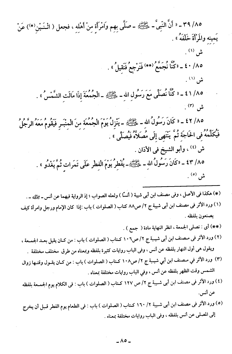 85/ 41 - "كنَّا نُصَلِّى مَعَ رَسُول الله - صلى الله عليه وسلم - الجُمُعَةَ إِذَا مَالَت الشَّمْسُ".