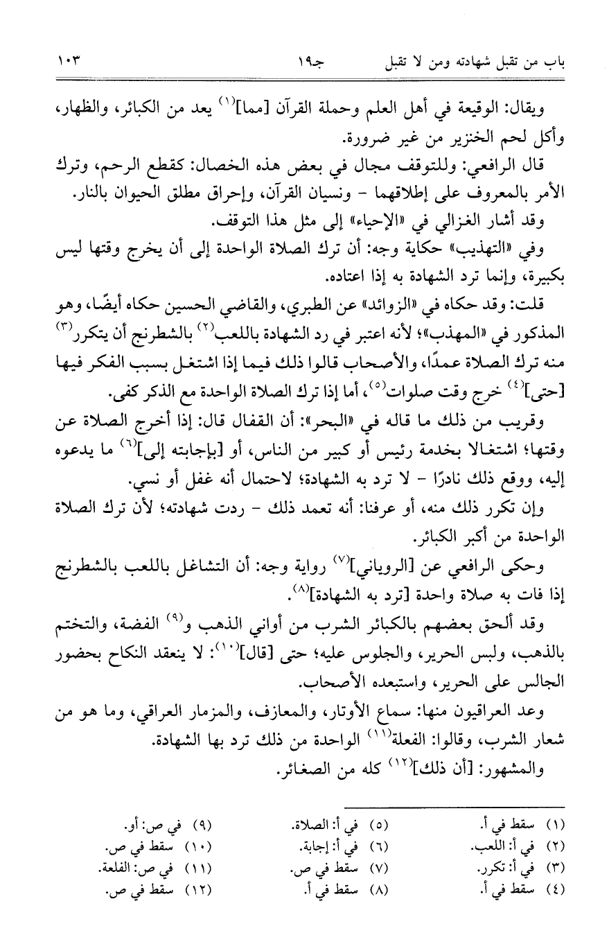 وإن تكرر ذلك منه، أو عرفنا: أنه تعمد ذلك- ردت شهادته، لأن ترك الصلاة الواحدة من أكبر الكبائر. وحكى الرافعي عن [الروياني] رواية وجه: أن التشاغل باللعب بالشطرنج إذا فات به صلاة واحدة [ترد به الشهادة].