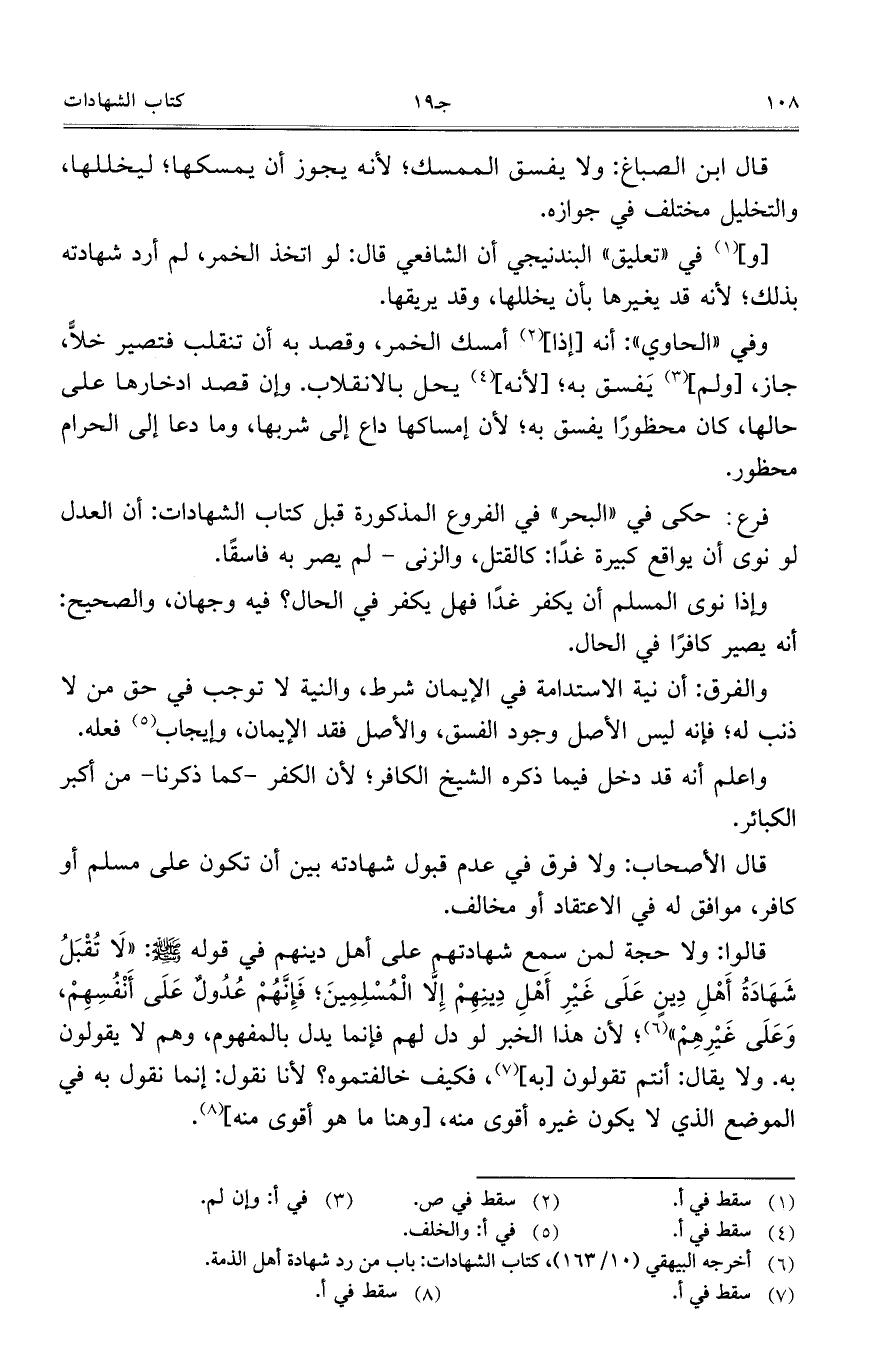 قالوا: ولا حجة لمن سمع شهادتهم على أهل دينهم في قوله صلّى الله عليه وسلّم: ((لا تقبل شهادة أهل دين على غير أهل دينهم إلا المسلمين، فإنهم عدول على أنفسهم، وعلى غيرهم))، لأن هذا الخبر لو دل لهم فإنما يدل بالمفهوم، وهم لا يقولون به. ولا يقال: أنتم تقولون [به]، فكيف خالفتموه؟ لأنا نقول: إنما نقول به في الموضع الذي لا يكون غيره أقوى منه، [وهنا ما هو أقوى منه].
