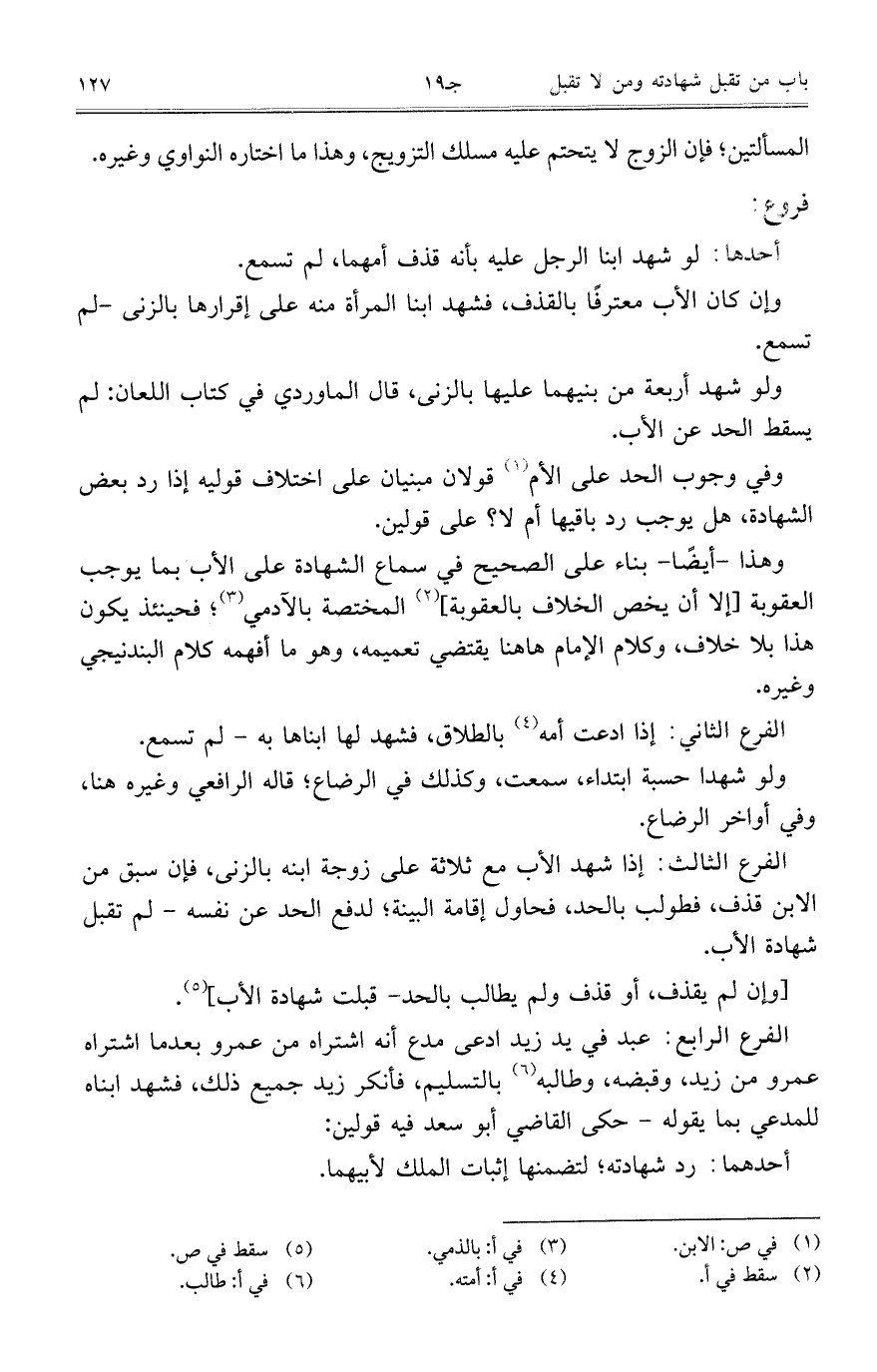 وهذا- أيضًا- بناء على الصحيح في سماع الشهادة على الأب بما يوجب العقوبة [إلا أن يخص الخلاف بالعقوبة] المختصة بالآدمي، فحينئذ يكون هذا بلا خلاف، وكلام الإمام ها هنا يقتضي تعميمه، وهو ما أفهمه كلام البندنيجي وغيره.