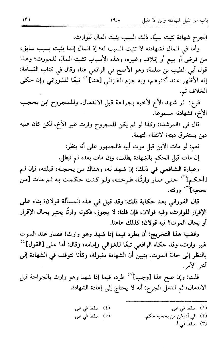 وعبارة الشافعي في ذلك: إن شهد له، وهناك من يحجبه، قبلته، فإن لم [أحكم] حتى صار وارثًا، طرحته، ولو كنت حكمت به ثم مات [من يحجبه] ورثته.