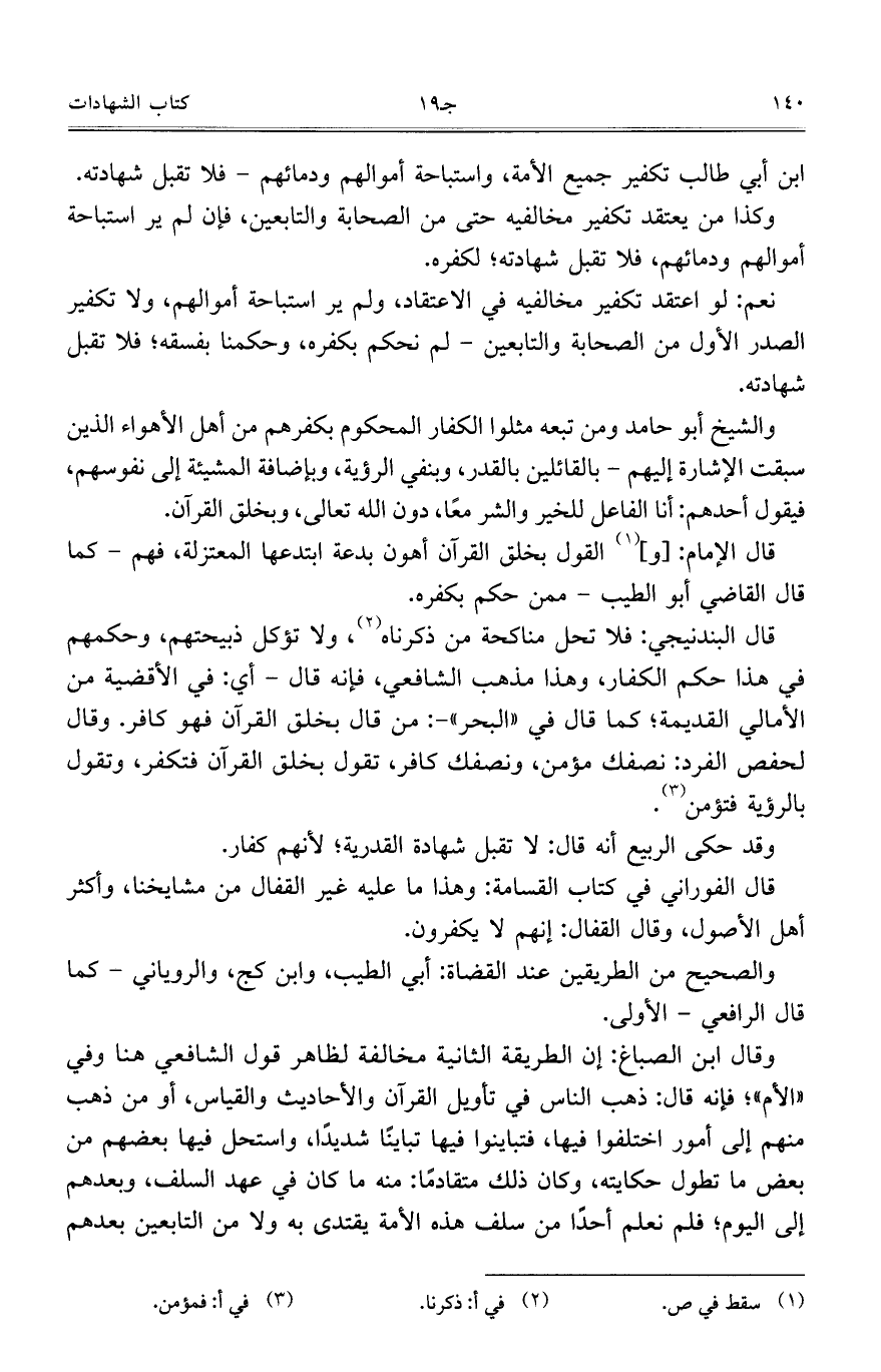 ابن أبي طالب تكفير جميع الأمة، واستباحة أموالهم ودمائهم- فلا تقبل شهادته.