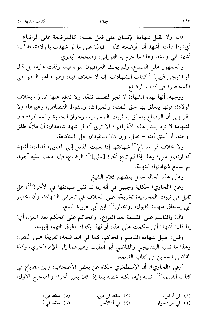 وقيل: تقبل شهادة القاسم والحاكم، كما في المرضعة، تفريعًا على النص، وهذا ما نسبه البندنيجي والقاضي أبو الطيب وغيرهما إلى الإصطخري، وكذا القاضي الحسين في كتاب القسمة.