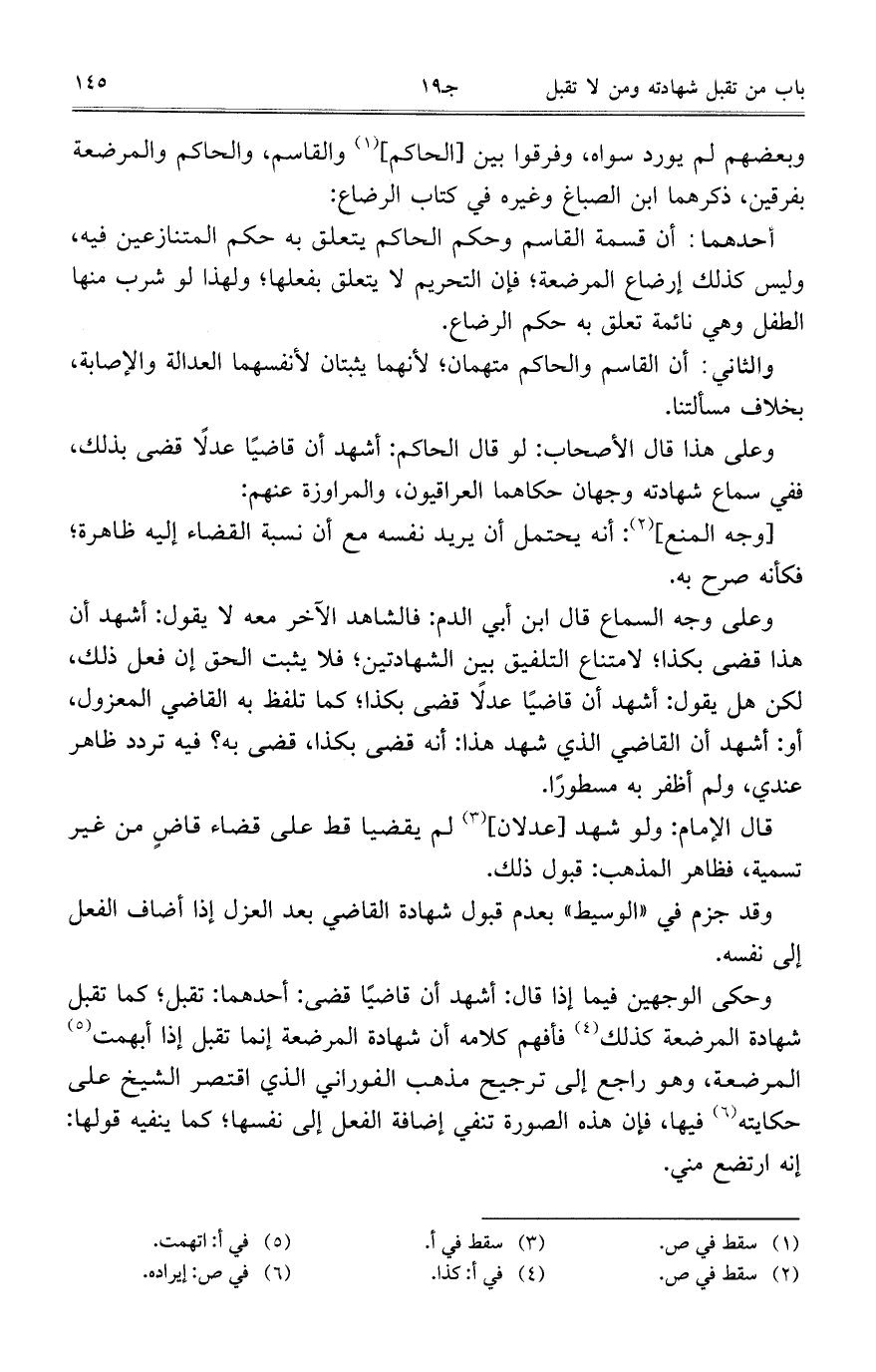 وبعضهم لم يورد سواه، وفرقوا بين [الحاكم] والقاسم، والحاكم والمرضعة بفرقين، ذكرهما ابن الصباغ وغيره في كتاب الرضاع: