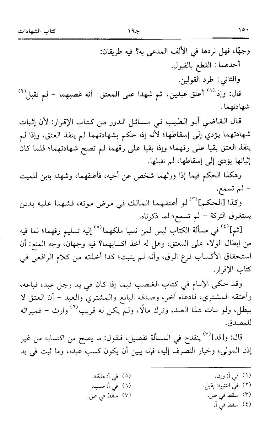 قال القاضي أبو الطيب في مسائل الدور من كتاب الإقرار: لأن إثبات شهادتهما يؤدي إلى إسقاطها، [لأنه إذا حكم بشهادتهما لم ينفذ العتق، وإذا لم ينفذ العتق بقيا على رقهما، وإذا بقيا على رقهما لم تصح شهادتهما، فلما كان إثباتها يؤدي إلى إسقاطها، لمن نقبلها.