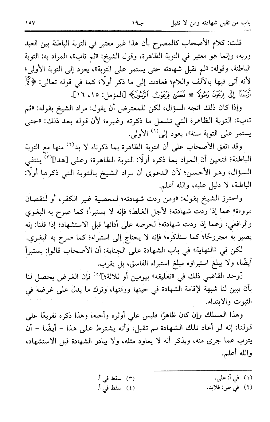 قلت: كلام الأصحاب كالمصرح بأن هذا غير معتبر في التوبة الباطنة بين العبد وربه، وإنما هو معتبر في التوبة الظاهرة، وقول الشيخ: ((ثم تاب))، المراد به: التوبة الباطنة، وقوله: ((لم تقبل شهادته حتى يستمر على التوبة))، يعود إلى التوبة الأولى، لأنه أتى فيها بالألف واللام، فعادت إلى ما ذكر أولًا، كما في قوله تعالى: {كَمَا أَرْسَلْنَا إِلَى فِرْعَوْنَ رَسُولًا (15) فَعَصَى فِرْعَوْنُ الرَّسُولَ} [المزمل: 15،16].
