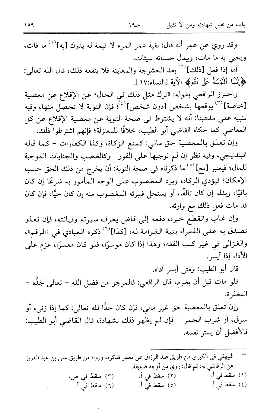 وإن تعلق بالمعصية حق مالي: كمنع الزكاة، وكذا الكفارات- كما قاله البندنيجي، وفيه نظر إن لم نوجبها على الفور- وكالغضب والجنايات الموجبة للمال، فيعتبر [مع] ما ذكرناه في صحة التوبة: أن يخرج من ذلك الحق حسب الإمكان، فيؤدي الزكاة، ويرد المغصوب على الوجه المأمور به شرعًا إن كان باقيًا، وبدله إن كان تالفًا، أو يستحل فيبرئه المغصوب منه إن كان حيًا، فإن كان قد مات فعل ذلك مع وارثه.