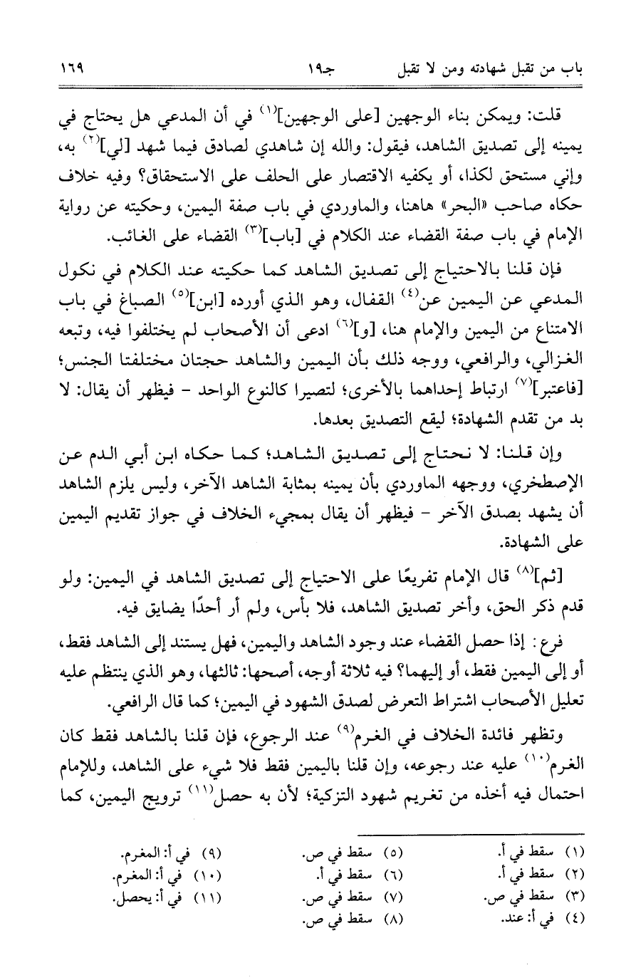 فإن قلنا بالاحتياج إلى تصديق الشاهد كما حكيته عند الكلام في نكول المدعي عن اليمين عن القفال، وهو الذي أورده [ابن] الصباغ في باب الامتناع من اليمين والإمام هنا، [و] ادعى أن الأصحاب لم يختلفوا فيه، وتبعه الغزالي، والرافعي، ووجه ذلك بأن اليمين والشاهد حجتان مختلفتا الجنس، [فاعتبر] ارتباط إحداهما بالأخرى، لتصيرا كالنوع الواحد- فيظهر أن يقال: لا بد من تقدم الشهادة، ليقع التصديق بعدها.