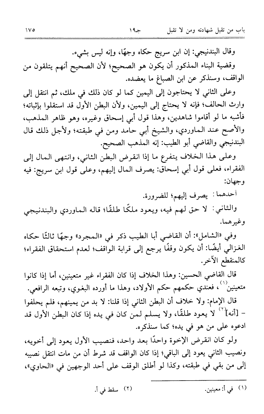وقضية البناء المذكور أن يكون هو الصحيح، لأن الصحيح أنهم يتلقون من الواقف، وسنذكر عن ابن الصباغ ما يعضده.