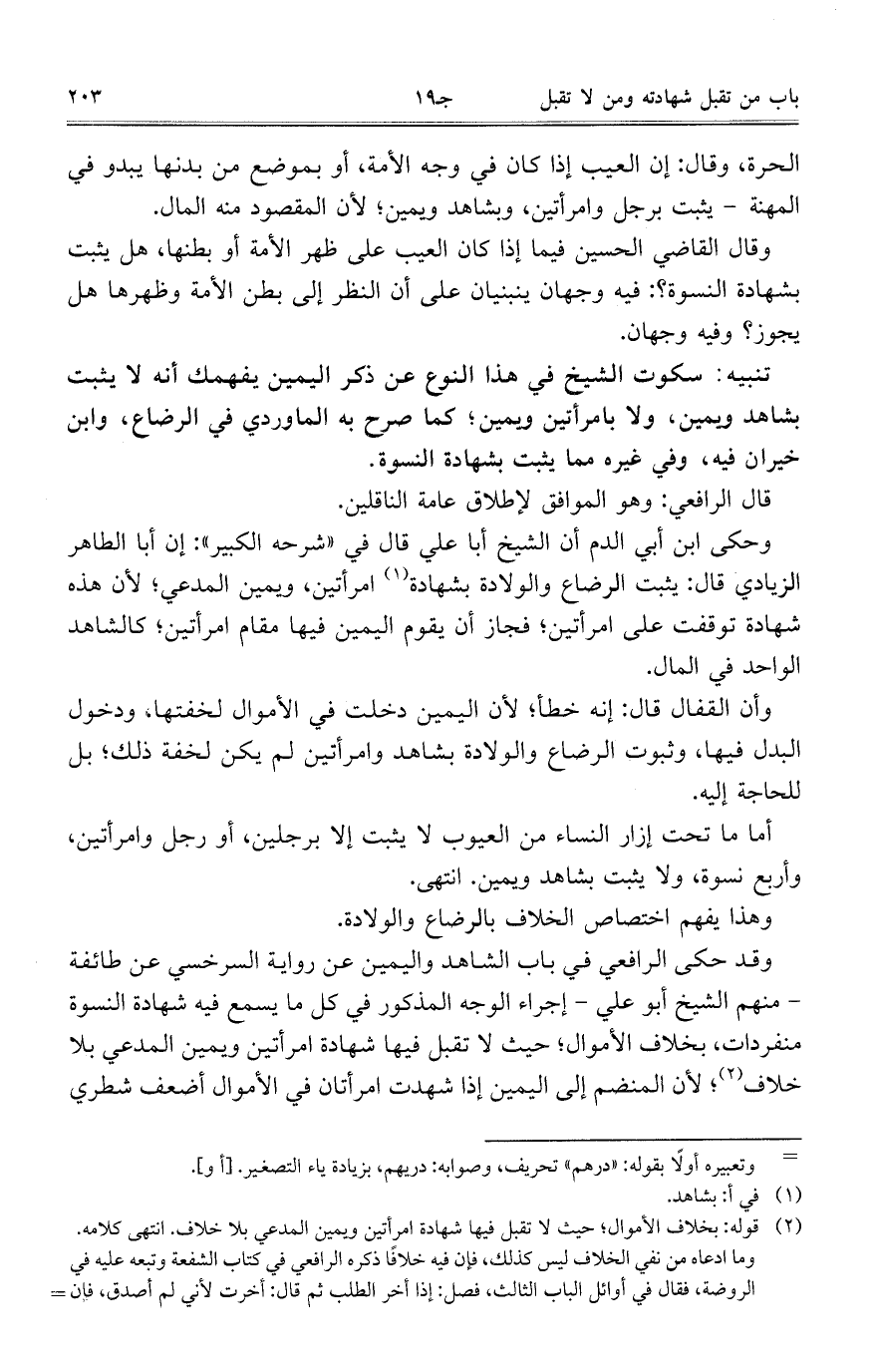 وقال القاضي الحسين فيما إذا كان العيب على ظهر الأمة أو بطنها، هل يثبت بشهادة النسوة؟: فيه وجهان ينبنيان على أن النظر إلى بطن الأمة وظهرها هل يجوز؟ وفيه وجهان.
