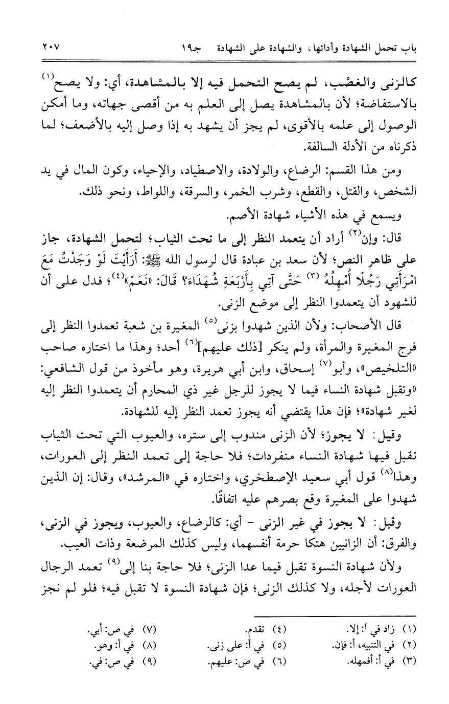 ولأن شهادة النسوة تقبل فيما عدا الزنى، فلا حاجة بنا إلى تعمد الرجال العورات لأجله، ولا كذلك الزنى، فإن شهادة النسوة لا تقبل فيه، فلو لم نجز
