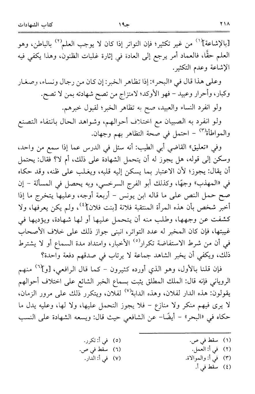 [بالإشاعة] من غير تكثير، فإن التواتر إذا كان لا يوجب العلم بالباطن، وهو العلم حقًا، فالعماد أمر يرجع إلى العادة في إثارة غلبات الظنون، وهذا يكفي فيه الإشاعة وعدم التكثير.