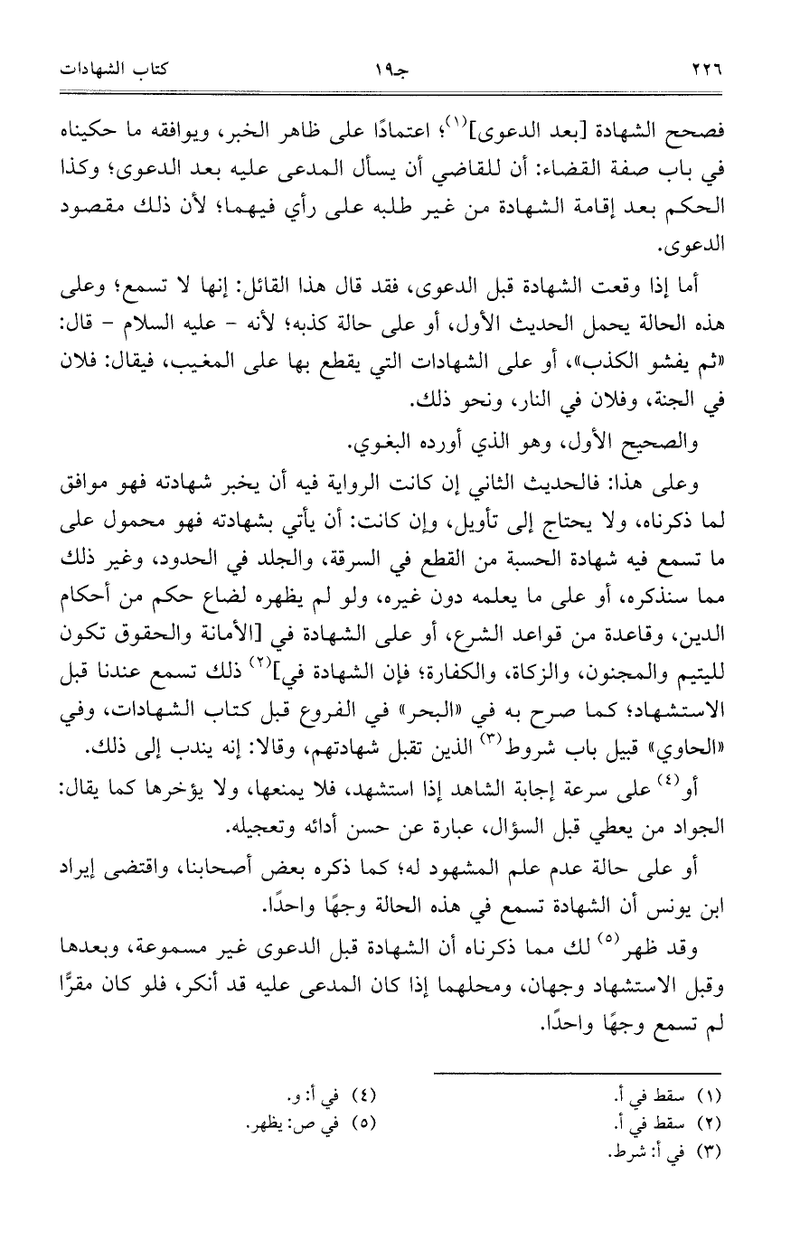 أو على سرعة إجابة الشاهد إذا استشهد، فلا يمنعها، ولا يؤخرها كما يقال: الجواد من يعطي قبل السؤال، عبارة عن حسن أدائه وتعجيله.